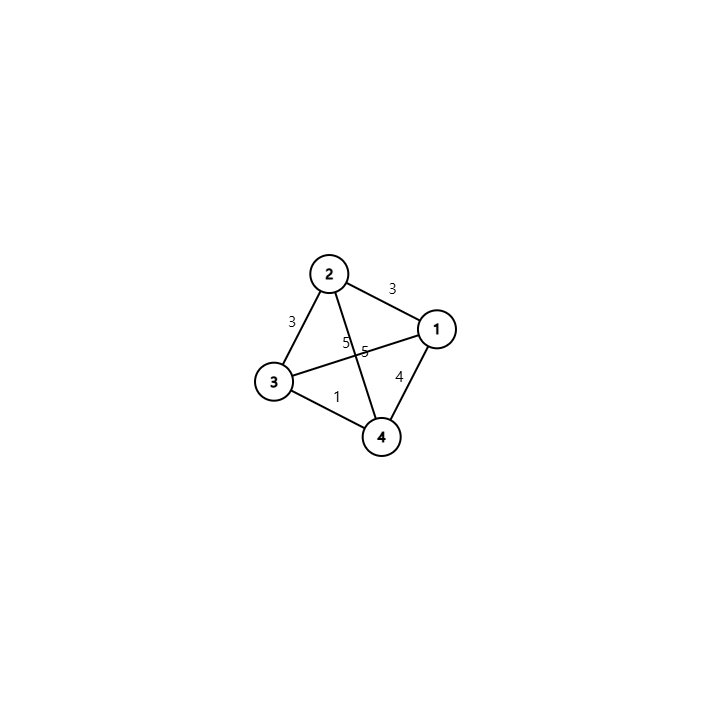 첫째 줄에 정점의 개수 N과 간선의 개수 E가 주어진다. (2 ≤ N ≤ 800, 0 ≤ E ≤ 200,000) 둘째 줄부터 E개의 줄에 걸쳐서 세 개의 정수 a, b, c가 주어지는데, a번 정점에서 b번 정점까지 양방향 길이 존재하며, 그 거리가 c라는 뜻이다. (1 ≤ c ≤ 1,000) 다음 줄에는 반드시 거쳐야 하는 두 개의 서로 다른 정점 번호 v1과 v2가 주어진다. (v1 ≠ v2, v1 ≠ N, v2 ≠ 1) 임의의 두 정점 u와 v사이에는 간선이 최대 1개 존재한다.